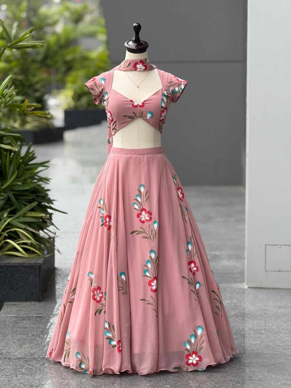 | Name : | SCnx 1180 Pure Georgette Hand Painted lehnga |
