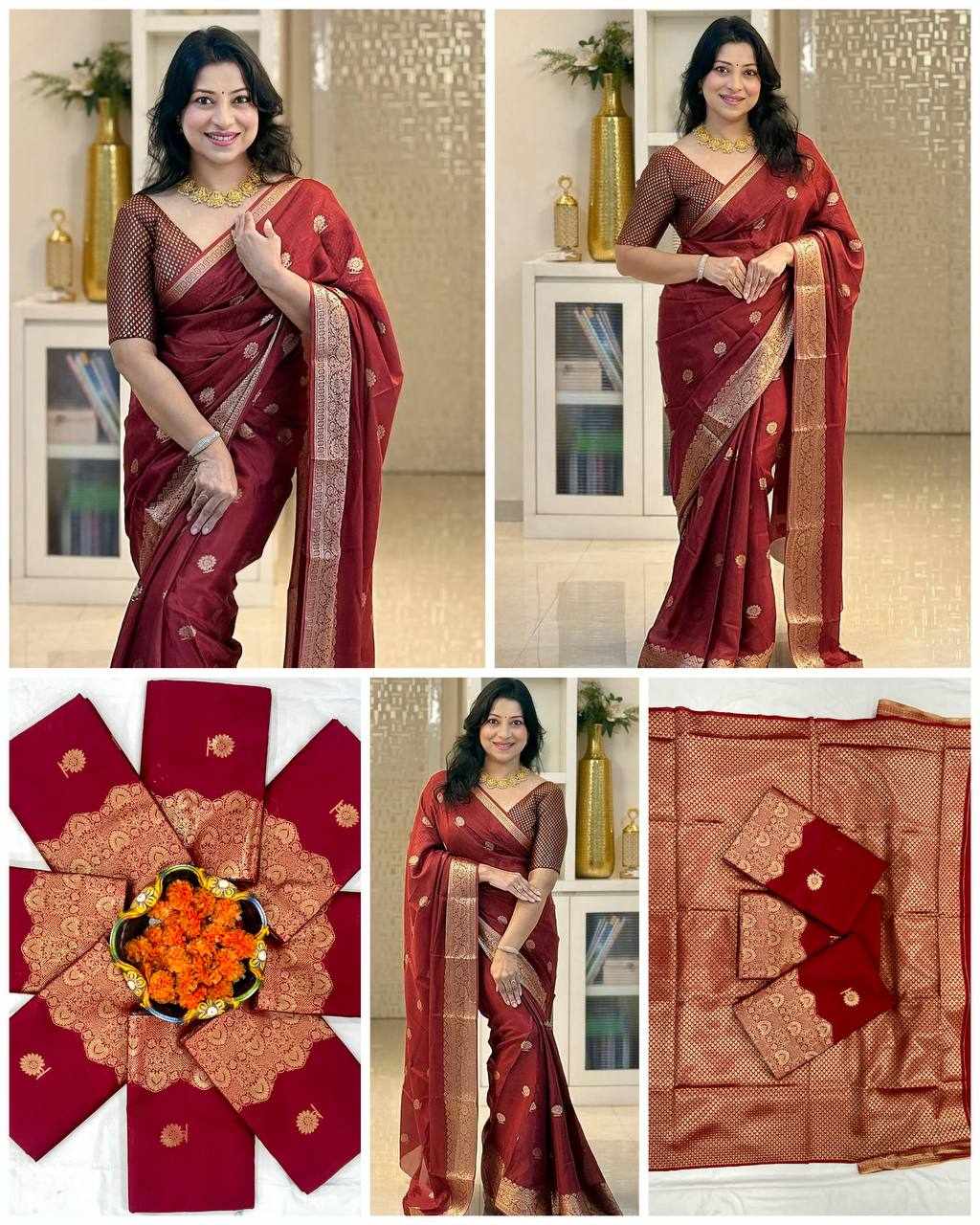 Experience timeless tradition with this luxurious Soft Banarasi Silk Saree, designed to give you a royal and graceful look for every special occasion.