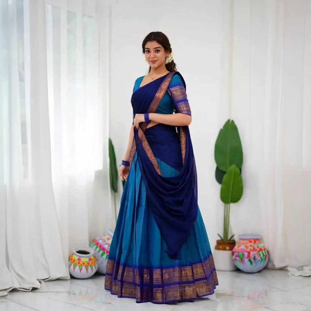 Name : | KPW 329 Blue Kanjiveram Silk Zari Lehanga |