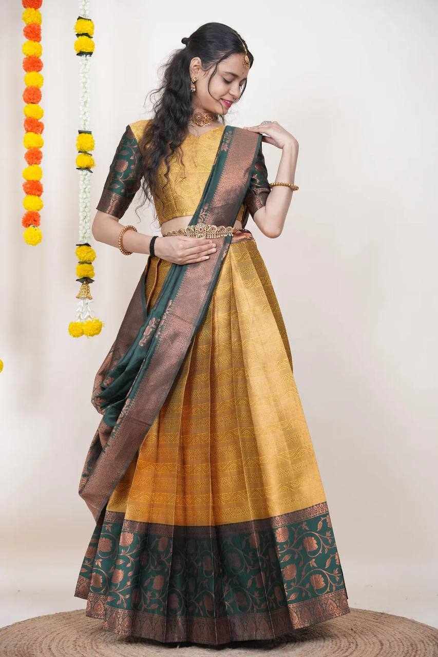 Name : KPW 330 Yellow Kanjiveram Silk Zari Lehanga