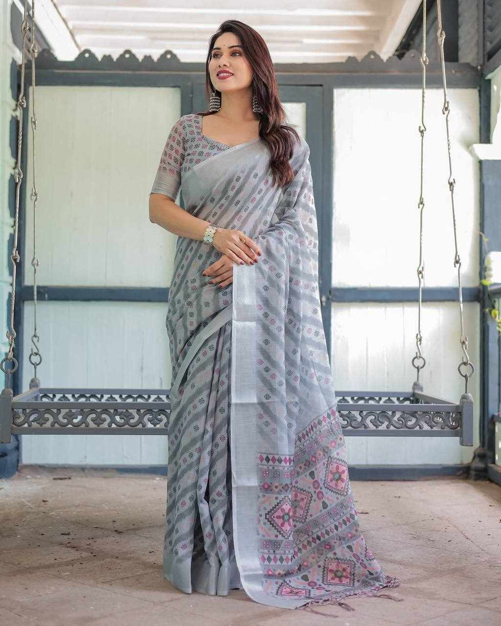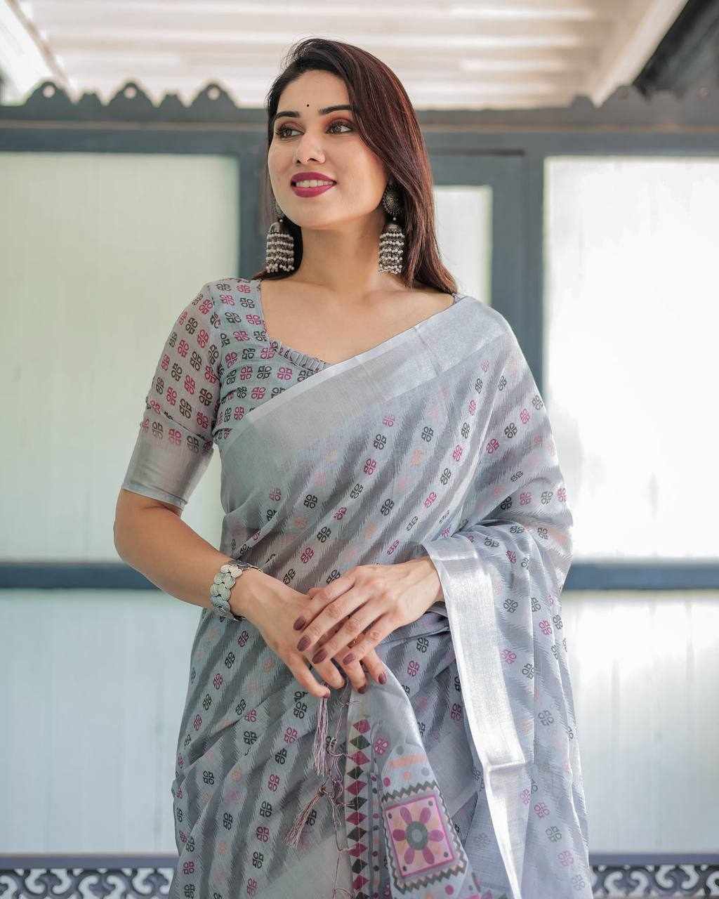 Saree Fabric: Silver Weaving Patta Linen Cotton