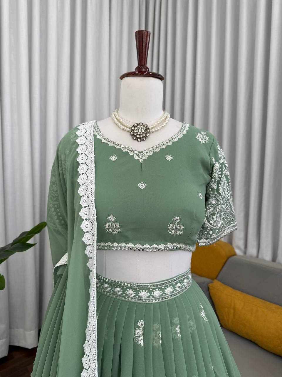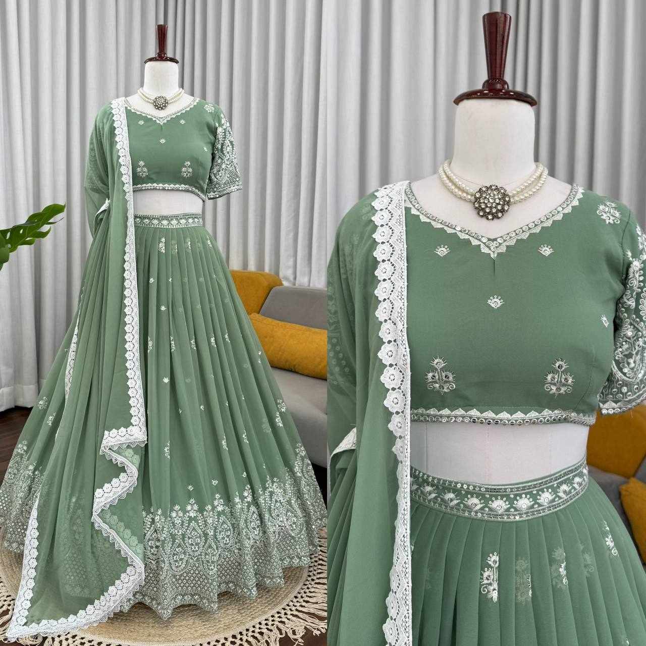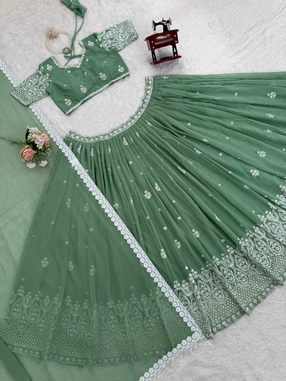 | Name : | QRC 382 Beautifual Pastel Green Heavy Designer Lehenga |